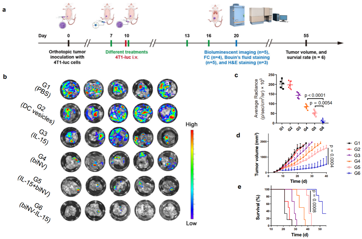 图1.仿生纳米疫苗介导的多价IL-15自反式呈递提高疗效并避免副作用