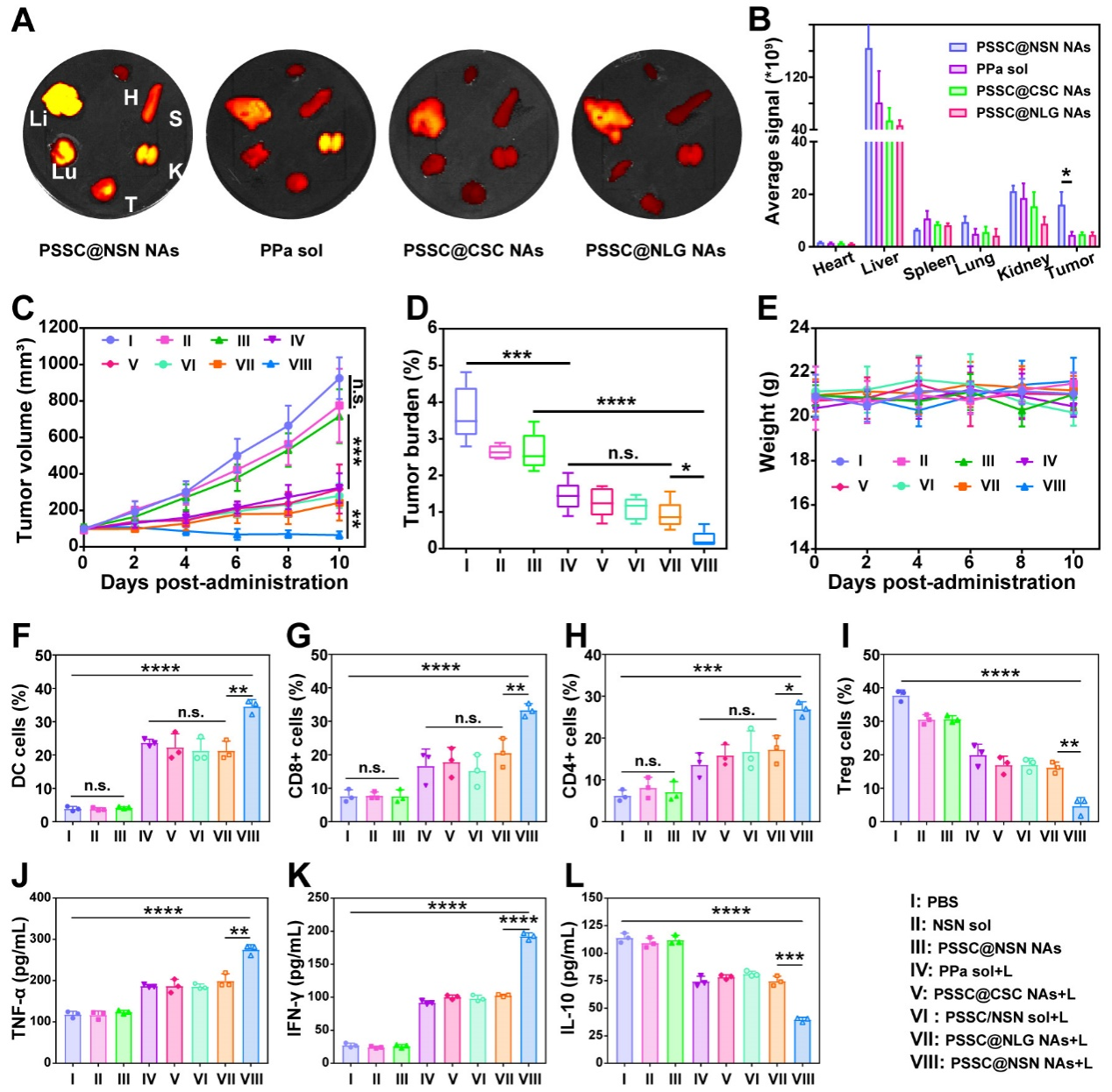 图6. 组织分布、光免疫治疗和体内抗肿瘤机制