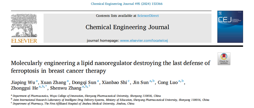 近日,欧冠联赛官网何仲贵教授/张申武教授在Chemical Engineering Journal杂志(IF = 13.3)在线发表题为“Molecularly engineering a lipid nanoregulator destroying the last defense of ferroptosis in breast cancer therapy”的研究性论文,报道了一种通过调节膜脂饱和度放大铁死亡驱动的抗肿瘤纳米药物递送策略。