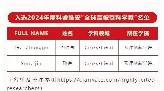 欧冠联赛官网2位学者入选2024年度科睿唯安“全球高被引科学家”名单