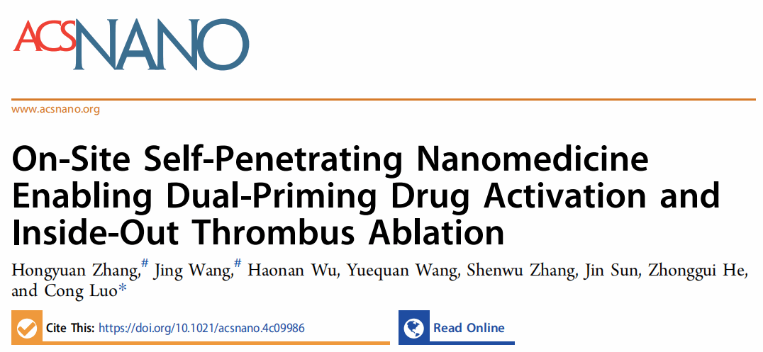 近日,欧冠联赛官网罗聪教授团队在《ACS Nano》(IF=15.8)在线发表了最新研究成果“On-Site Self-Penetrating Nanomedicine Enabling Dual-Priming Drug Activation and Inside-Out Thrombus Ablation”。该研究提出了一种基于光热/光动双效光敏剂与氧化响应抗血小板前药共组装实现多模式激活抗血栓前药的新策略,有望解决血栓ROS异质性导致的前药激活瓶颈难题。在该研究中,作者首先设计合成了一种抗血小板药物替格瑞洛(TGL)的氧化响应前药(TGL-S-Fmoc, TSF)。随后,发现TSF可以与光热/光动双功能的光敏剂IR808共组装形成稳定的纳米结构。基于此,作者开发了一种自穿透、自激活、多模式协同的无载体纳米组装递药系统(T-TSFI NAs)。在光热效应的辅助下,T-TSFI NAs不仅能够实现血栓的深部穿透,还通过产生ROS协同内源性ROS触发前药按需激活,栓块内部释放抗血小板药物TGL,从而实现光热/抗血小板协同溶栓。T-TSFI NAs在FeCl₃诱导的大鼠颈动脉血栓模型中不仅有效抑制了血小板的激活和聚集,还显著降低了出血风险。这一策略成功克服了血栓微环境中ROS分布不均的难题,为抗血栓前药按需高效激活提供了新思路。
