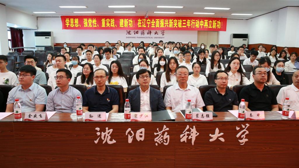 校党委常委、副校长宋少江发表重要讲话。他对学院党委突出问题导向,搭建共产党员工程活动实践载体,一体推进主题教育高质量发展和全面振兴新突破三年行动方案各项目标任务达成给与充分肯定,并代表校党委要求学院党政协同工作,以立德树人为根本任务,以为党育人、为国育才为根本目标,团结带领全院师生以主题教育推动高质量发展为工作抓手,把党的创新理论有效转化为发展导向、政策举措和工作方法,搭建更多组织、动员、整合全院师生形成合力的实践载体,团结带领师生拼抢争实、比学赶超、争先进位,贯彻好落实好习近平总书记5月29日在中共中央政治局第五次集体学习时关于教育强国的重要指示:“把加快建设中国特色、世界一流的大学和优势学科作为重中之重,大力加强基础学科、新兴学科、交叉学科建设,瞄准世界科技前沿和国家重大战略需求推进科研创新,不断提升原始创新能力和人才培养质量。”主动超前布局、有力应对变局、奋力开拓新局,力争取得更多“双一流”建设成果。同时希望学院全体师生对标对表辽宁全面振兴新突破三年行动方案的总体目标、重点任务及落实校、院两级 “十四五”发展规划中的关键环节,厘清学院贯彻落实辽宁全面振兴新突破三年行动方案的重点难点工作点位,进一步融入辽宁省工业发展加快壮大的新格局,加强有组织科研,加强技术创新,构建产学研用深度融合、全链条网络化开放式的协同创新共同体,不断提升学院服务辽宁药企能力,大干三年、奋斗三年,在新时代新征程辽宁振兴和学院高质量发展上展现更大担当和作为。
