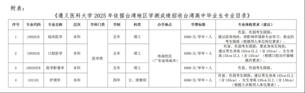 4.专业报考限制说明:根据教育部、卫生部、中国残疾人联合会制定的文件《普通高等学校招生体检工作指导意见》(教学〔2003〕3号),轻度色觉异常(俗称色弱)和色觉异常Ⅱ度(俗称色盲)不能报考医学类专业。