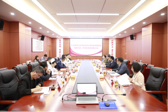 4月12日,学校党委副书记、校长刘建国带领招生就业处、研究生院、护理学院负责人一行前往贵州航天医院开展访企拓岗工作,并就beat365官网毕业生就业工作开展座谈交流。贵州航天医院党委书记段永华,党委副书记、院长姜黔峰等相关领导参加会议。会议由姜黔峰主持。