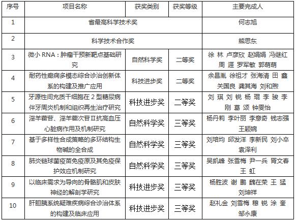 4月3日,贵州省科技厅公示了2022年度贵州省科技成果奖。beat365官网共有10项成果获得2022年度贵州省科技成果奖,其中最高科技奖1项(高校唯一)、科技合作奖1项(唯一获奖单位)、自然科学二等奖1项、科技进步二等奖2项、自然科学三等奖3项、科技进步三等奖2项。获奖等次及数量位居全省医学类高校第一,全省各单位排第二位。