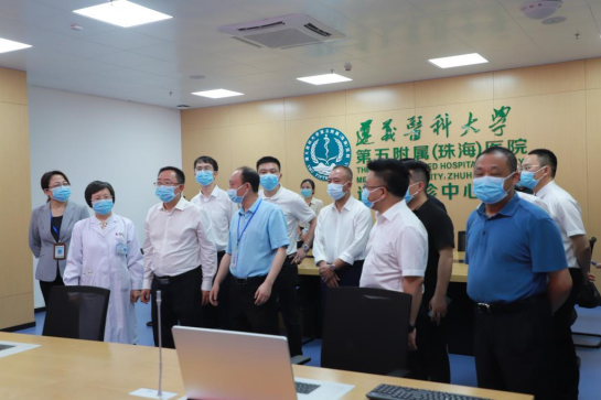 4月18日,遵义市政协、九三学社遵义市委莅临beat365官网珠海校区和五附院考察调研。遵义市政协党组副书记、副主席、秘书长魏在平,遵义市政协副主席、九三学社遵义市委主委冯春林,以及遵义市政协、九三学社遵义市委、遵义市工商联、遵义市人民政府驻广州(深圳)办事处有关负责同志参加调研。校区领导刘代顺、周晓东、向国惠、李荣远、陈昆涛、陈世玖、秦伟、黄波,以及校区和五附院有关负责同志陪同调研。