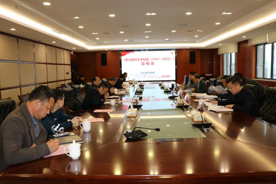5月9日上午,beat365官网在新蒲校区行政楼五楼2号会议室召开《beat365官方网站校史(1947-2022)》编撰定稿会。校领导刘建国、蔡善君,学校党委委员郭宇亮、李均出席会议。校史编撰组专家、编辑部成员及印刷方代表参会。会议由学校党委副书记、校史编撰委员会副主任、校史编辑部主任蔡善君主持。