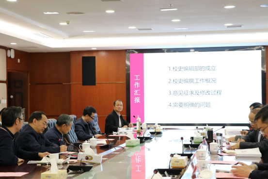 会上,学校档案馆馆长、校史编辑部副主任付延功作《全面回顾总结辉煌办学历史为高质量发展提供不竭动力》校史编撰修改情况汇报。校史编辑部成员顾土龙、田宗远、秦学文、付延功分别汇报了校史四个篇章编撰总体情况。郭宇亮、李均、罗扬等领导提出了修改意见和建议。印刷方代表对校史封面设计方案作了展示。(审核:一审付延功、二审杨清玉、三审李均,撰稿/摄影:郭妍妍)