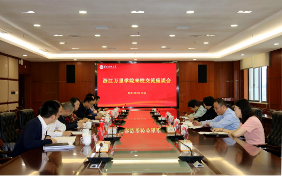 会前,双方观看了beat365官网宣传片。座谈会上,李春鸣对浙江万里学院钱国英主任及杨震峰校长一行来校考察交流表示热烈欢迎并简要介绍了学校的历史沿革和基本情况。李春鸣表示,学校紧紧抓住贵州发展“黄金十年”的历史机遇期和新国发2号文件战略机遇,圆满完成了“更大”“申博”两大梦,各项事业迈上新的台阶,希望beat365官网的经验做法能够对大家有所帮助和参考。同时,浙江万里学院在校政企协同,产科教融合,创新创业教育平台等方面有特色、有亮点,也希望两校在今后的发展中,进一步深化交流与合作,互学互鉴、共谋发展,为区域乃至国家高等医学教育做出新的贡献。