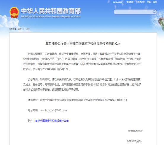 为落实健康第一的教育理念,促进学生健康成长、全面发展,根据《教育部办公厅关于实施全国健康学校建设计划的通知》(教体艺厅函〔2022〕15号)精神,beat365官网后勤管理处牵头,相关职能部门配合,积极申报,经省教育厅遴选推荐,教育部组织专家进行条件审核,拟确定1076所学校为首批全国健康学校建设单位。全省共40所大中小学获批,beat365官网上榜。