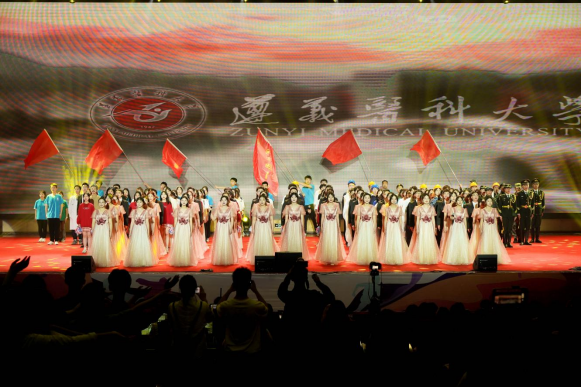 汇演分为“云程发轫 踵事增华”“初心照耀 青春奋发”“踔厉笃行 共筑华章”三个篇章。歌伴舞《错位时空》用歌声和舞蹈回顾党的奋斗历程,热情讴歌中国共产党的丰功伟绩;合唱与乐队表演《祖国颂》、体育舞蹈《我和我的祖国》歌颂祖国大好河山,表达了浓浓的爱国之情;合唱与情景剧表演《初心领航 乘风破浪》、配乐诗朗诵《芳华76载 奋进遵医人》展现了有着红色基因的遵医,历经76载风雨洗礼,不断发展壮大的“青春密码”;情景舞蹈《医路同行》、现代舞《追光者》演绎了医学生的成长历程和医护人员无畏逆行的责任担当;傣族舞蹈《陶醉了》带领观众感受少数民族积极向上的精神风貌。伴随着时代的歌声,绚烂的舞姿,汇演在歌伴舞《领航》中落下帷幕。