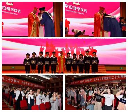 最后,学校党委副书记、校长刘建国为获得学位的毕业生代表授予学位、拨穗,毕业生们重温医学生誓词。在激昂的校歌声中,2023届毕业典礼暨学位授予仪式顺利落下帷幕。(审核:一审上官腾飞、袁怡,二审杨清玉,三审李均,撰稿:龚喜,摄影:翟聚红)