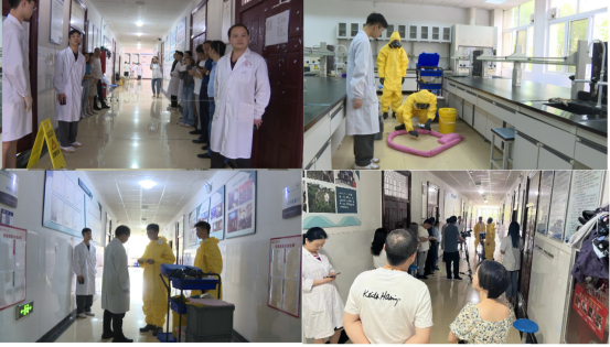 为贯彻落实《贵州省教育厅办公室关于开展全省教育系统2023年“安全生产月”活动的通知》的文件精神,按照学校2023年“实验室安全生产月”活动方案安排,6月28日,学校分别在beat365官方网站国家级药学实验教学示范中心、科研楼四楼贵州省高等学校传染病与生物安全重点实验室开展实验室化学突发事件及生物突发事件应急演练活动。学校党委委员、副校长龚其海,设备处,药学院、基础医学院、科技处、保卫处、校医院参加,各院系、各实验室实验人员和师生现场观摩。