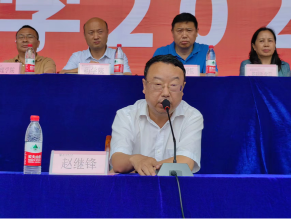 会上,赵继锋为2022级大学生军训团授旗,并作军训动员讲话。他首先代表学校全体师生向承训教官表示热烈的欢迎和衷心的感谢。他指出,军训既是国家对大学生的一种培养方式,也是大学生强化担当,增强意识、锤炼品质的重要试炼,更是展示自身风采和为祖国争光的重要机遇。希望同学们在本次军训过程中端正态度、提高认识,服从规定、遵章守纪,认真训练、淬炼意志,科学参训、注意安全,以饱满的热情和高昂的斗志展现beat365官网大学生军训风采。曾德均在讲话中明确了军训教官的职责任务,强化了军训纪律要求,保证以高标准高质量完成此次军训任务。
