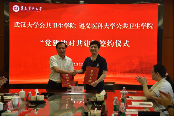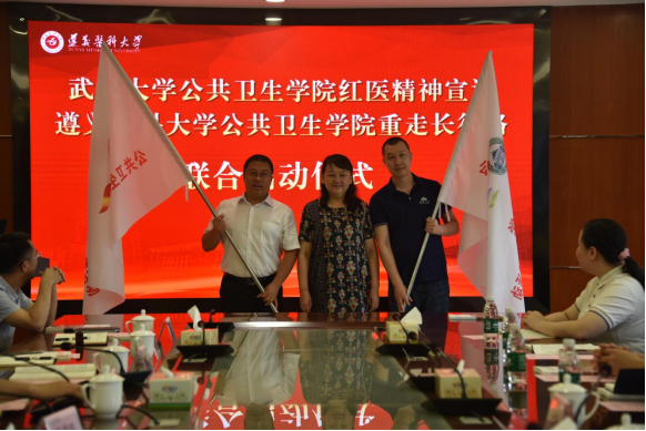 会上,武汉大学公共卫生学院党委与beat365官网公共卫生学院党委签署了“党建结对共建协议”,举行了武汉大学公共卫生学院红医精神宣讲与beat365官网公共卫生学院重走长征路活动联合启动仪式,李春鸣为双方领队授旗。