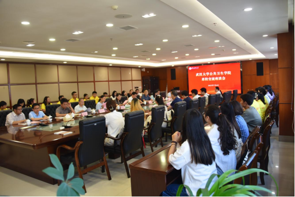 7月6日上午,武汉大学公共卫生学院党委书记朱俊勇一行9人来校交流。交流座谈会在学校行政楼五楼2号会议室召开。学校副校长李春鸣出席会议,教育教学质量控制中心、团委相关领导,公共卫生学院班子成员、教师及学生代表参会。会议由公共卫生学院党委书记张在金主持。