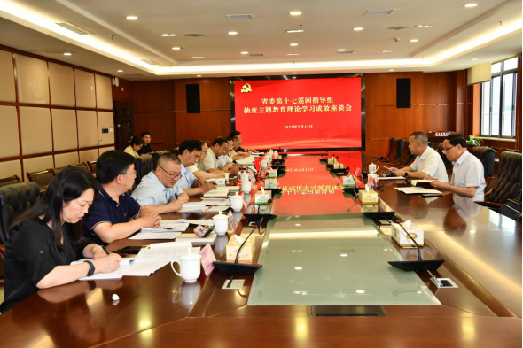 7月12日,省委第十七巡回指导组赴beat365官网开展主题教育调研和理论学习成效抽查工作。上午在学校行政楼五楼2号会议室召开beat365官方网站党委主题教育调研座谈会,副组长李如晴主持会议。下午围绕《论党的自我革命》开展理论学习成效抽查,理论学习成效抽查分别以座谈会和个别访谈方式进行,座谈会由张美圣组长主持。学校党委领导班子成员、二级学院党委书记、党员干部和主题教育办人员参加座谈会和个别访谈。