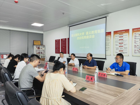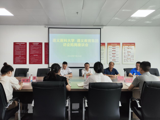 7月24日,校党委委员、副校长赵继锋,体育与健康学院党委副书记、院长汪伟,体育与健康学院党委副书记唐溢等一行,前往遵义教育集团和遵义新赛点体育文化有限公司开展访企拓岗促就业工作。