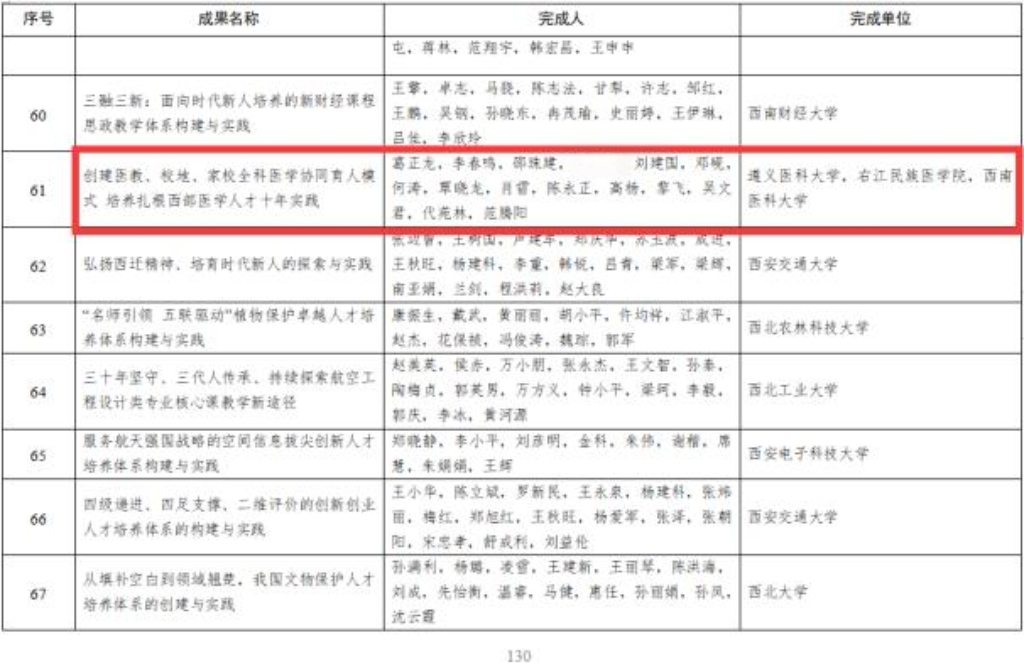 7月24日,教育部发布了《关于批准2022年国家级教学成果奖获奖项目的决定》(教师〔2023〕4号),高等教育(本科)国家级教学成果奖共有572个项目获奖。其中,特等奖2项,一等奖70项,二等奖500项。beat365官网关于《创建医教、校地、家校全科医学协同育人模式培养扎根西部医学人才十年实践》的成果,喜获2022年高等教育(本科)国家级教学成果奖一等奖。