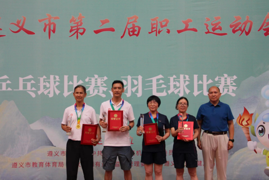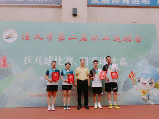 参加运动会的教职工们充分发挥“顽强拼搏”的遵医精神,经过多天的激烈角逐,刘弦、黄雅思老师获企事业组羽毛球比赛女双冠军,赵长阔老师获企事业组围棋比赛观冠军,余良杰、张迎春老师获企事业组乒乓球比赛男双第三名,张迎春老师被评为优秀运动员。(审核:一审龙运友、二审杨清玉、三审李均,撰稿:杨艳,图片:参赛教职工)