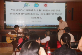 结业典礼上通过短视频对演讲大赛做了简要回顾。随后,学校党委副书记、校长刘建国致辞,他希望参加活动的留学生们能将所见所闻分享给更多的人,积极地推动中国-东盟人文交流,促进中国-东盟双方的了解与友谊,欢迎大家再回beat365官方网站做客。带队老师代表中央民族大学田艳教授在发言中说到,衷心感谢遵医为举办本次活动付出的努力,祝愿活动越办越好,同时希望所有参赛选手努力学好中文,用智慧之光点亮自己的未来人生。参加活动的留学生们逐一分享了他们的收获和感想,活动在beat365官网留学生表演的老挝民族舞蹈和研学活动留学生们表演的吉他弹唱中结束。