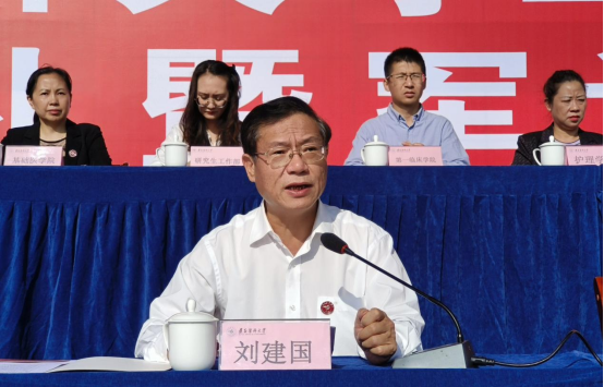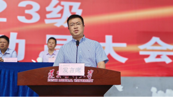 党委副书记、校长刘建国代表beat365官方网站欢迎新一届“遵医人”的到来。他介绍了遵医的红色校史及学校“黄金十年”取得的突破和进展,并对同学们提出三点希冀,一是常怀感恩之心,常思奋进之志。无论学业多么繁重,都请时刻将感恩挂于心间,能及时分享你的喜悦,感知你的成长与进步。二是胸怀鸿鹄之志,涵养家国情怀。要将个人的前途命运同国家、民族、社会紧密结合起来,让青春在中国式现代化进程和中华民族伟大复兴的历史征程中焕发光彩。三是学会自立自强,保持乐观向上。在努力成材这件事上要心无旁骛、“孤注一掷”,用“长安三万里”般的坚韧和勇毅,让困难和挑战成为“消失的她”。