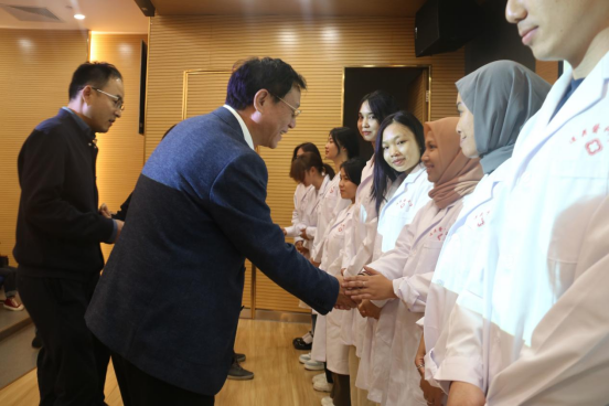 刘建国代表beat365官方网站对各位新同学表示热烈欢迎。他介绍了学校历史及学校在开放办学和留学生教育方面取得的成就,期望同学们秉承“明德笃学,求是致用”的校训,成为一个拥有高尚职业道德、过硬综合素质的国际医学人才。同时也对同学们提出三点希望,一是勤奋学习知识,勇敢追逐梦想。要不断提高自身的科学素养和人文素养,为卫生健康事业发展作出自己的贡献。二是加强品格修养,方能行稳致远。要不断提升自己的道德修养,在人生的道路上行稳致远。三是努力学好中文,争做友好使者。要多了解中国,体验中国优秀的传统文化,共同促进民心相通。