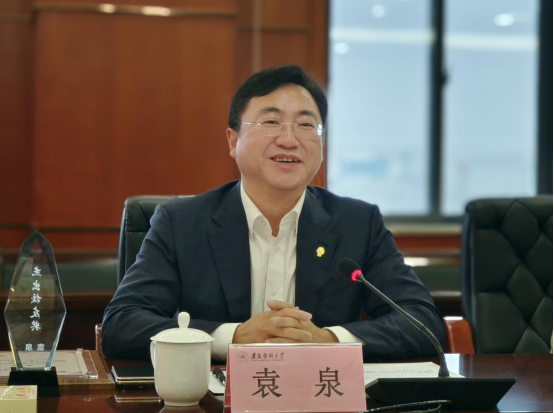 会前,袁泉一行参观了学校校史馆。他在展品前不时驻足观看,对学校发展频频称赞,并表示作为一名遵医人倍感自豪。