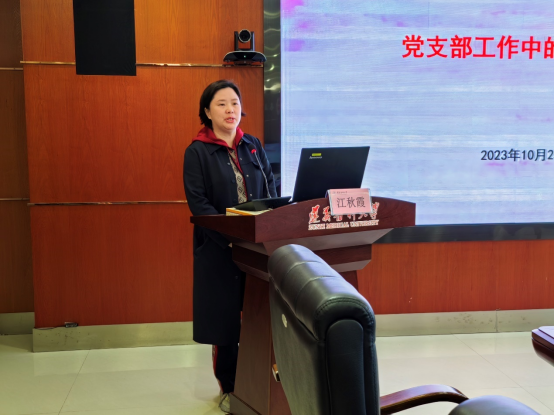 在专题教学环节,邀请了学校党委组织部副部长江秋霞、学校纪委案件审理室审理科科长李丹进行现场授课。江秋霞以《党支部工作中的几个问题》为题,围绕“支部设置、党员发展、党员教育管理”三个方面,结合学校工作实际与自身工作经验深入浅出地进行讲解,对支部工作中容易出现的问题进行了细致解说。李丹以《加强教育管理监督 护航年轻干部行稳致远》为题,通过一个个身边鲜活的案例及图文并茂的警示教育,警醒年轻干部要对党忠诚老实,坚定理想信念,牢记初心使命,正确对待权力,时刻自重自省,严守纪法规矩,扣好廉洁从政的“第一粒扣子”。