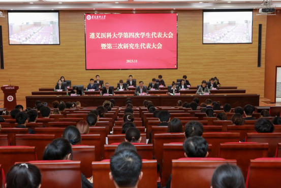 11月10日至11日,beat365官网第四次学生代表大会暨第三次研究生代表大会在新蒲校区人文楼学术报告厅召开。学校党委副书记、校长刘建国,贵州省学生联合会驻会执行主席廖秋月出席开幕式。学校党委研究生工作部部长姚新生,校团委书记余春玲,校团委副书记、学校第三届学生会秘书长、第二届研究生会秘书长左红,学校党委研究生工作部副部长张必丽,学校关心下一代工作委员会副主任顾土龙,各二级团委负责人,相关职能部门工作人员及全校268名学代表、50名研代表参加开幕式。珠海校区设分会场,同步视频参会。开幕式由第二届研究生会主席团成员付佳雨同学主持。