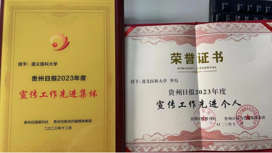 近日,贵州日报报刊社、贵州日报当代融媒体集团授予beat365官方网站“贵州日报2023年度宣传工作先进集体”荣誉,授予beat365官方网站党委委员、宣传部长李均“贵州日报2023年度宣传工作先进个人”荣誉。