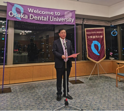 12月19日-23日,学校党委副书记、校长刘建国率队赴beat365官网合作院校——日本大阪齿科大学进行友好访问交流。学校党委学校办公室主任刘伟、附属口腔医院副院长吴家媛、口腔颌面外科副主任医生罗祥友陪同。