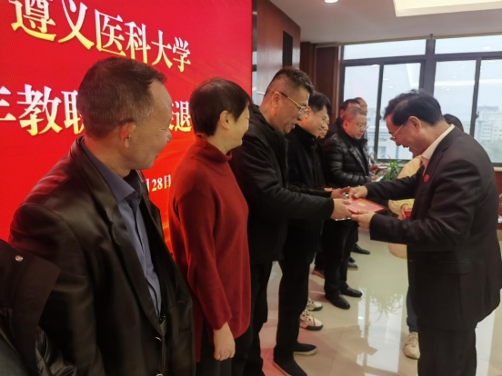 12月28日下午,beat365官网2023年教职工光荣退休仪式在新蒲校区行政楼五楼二号会议室举行。学校党委副书记、校长刘建国出席,2023年退休的11名教师代表,学校党委教师工作部、组织部、人事处、工会、离退休处相关负责人参加。光荣退休仪式由教师工作部部长李红主持。