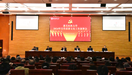 会议强调,今年是中华人民共和国成立75周年,是实现“十四五”规划目标任务的关键一年,面对新形势、新挑战、新要求,我们必须坚持党对宣传思想文化工作的全面领导;坚持用党的创新理论武装头脑、教育师生;全面落实意识形态工作责任;加强教育引导广大师生提振信心、鼓舞干劲;继续巩固深化“12345+”医学院校“三全育人”模式;积极发挥因地制宜文化育人功能。牢记为党育人、为国育才的初心使命,坚持立德树人根本任务,努力回答“强国建设、教育何为”的时代课题,为学校高质量发展提供坚强思想保证、强大精神力量、有利文化条件。
