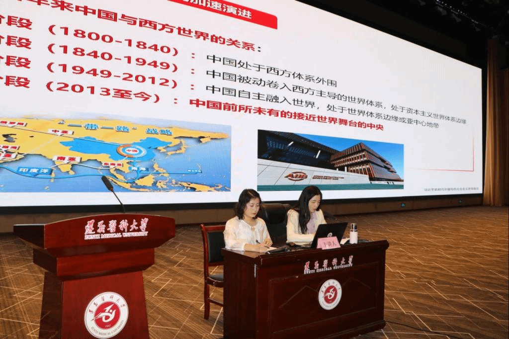 开班典礼后,马克思主义学院副教授周小艺、研究生姚雯竞采用“理论宣传二人讲”方式,以《习近平新时代中国特色社会主义思想概论》为题,围绕习近平新时代中国特色社会主义思想的创立背景、科学内涵及青年应如何学习领会习近平新时代中国特色社会主义思想等内容进行授课,旨在让党的创新理论飞入青年学生脑海中,落在青年学生心坎上。