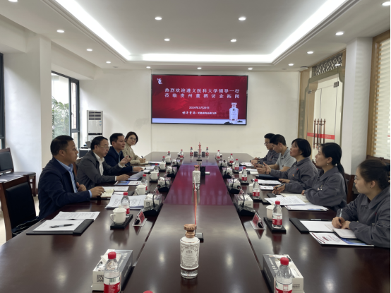 9日,学校党委委员、副校长赵继锋一行到贵州董酒股份有限公司开展“访企拓岗”专项行动并召开座谈会。贵州董酒股份有限公司党委副书记、副总裁王莉萍,总裁办主任助理、人力资源总监王海治,公共卫生学院党委书记张在金、副书记王红卫及双方有关代表参加。