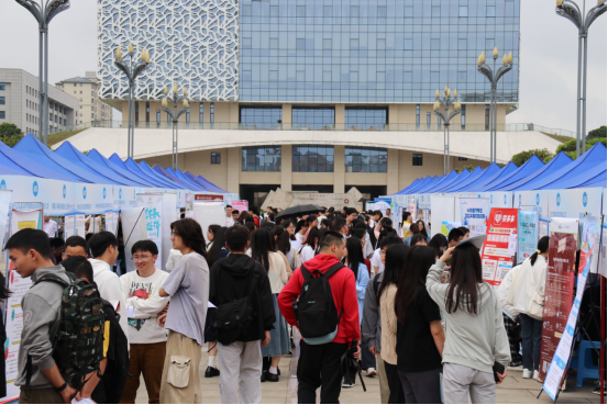 4月17日,beat365官网在新蒲校区图书馆至学生中心区域广场成功举办2024届毕业生春季招聘会(第二场)。