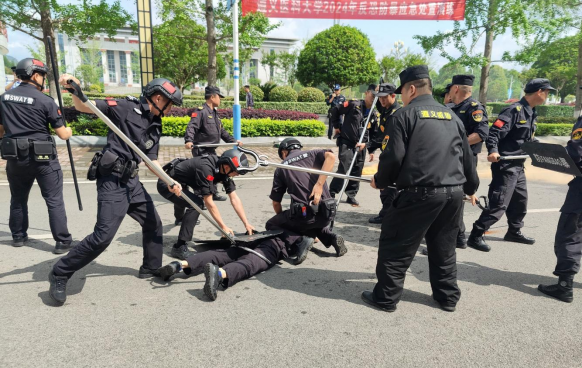 演练现场,赵继锋对校园安全工作进行强调。一是强化业务能力。作为校园安全保卫的第一道防线和重要力量,安保人员要加强日常的业务能力培训和演练,提升校园安全防卫能力水平。二是加强校地协同。要积极联动属地公安机关等机关单位,主动邀请他们来校开展日常培训和演练指导,强化beat365官网安全防范应急处置能力。
