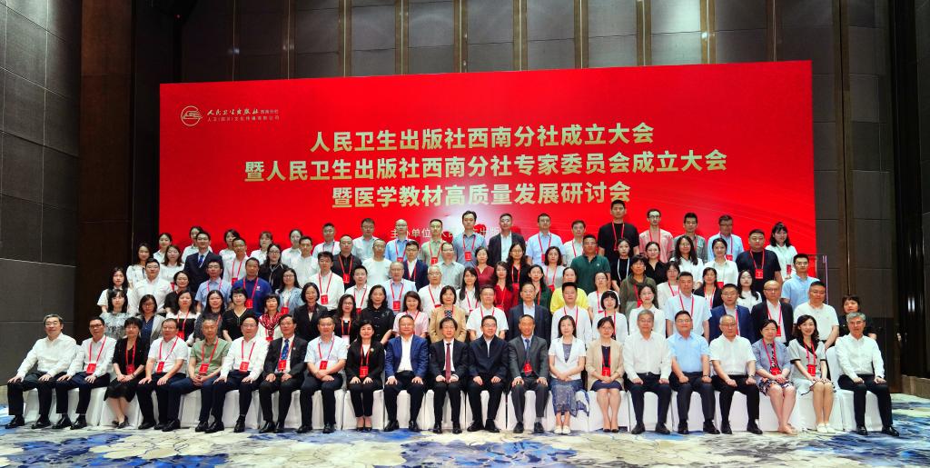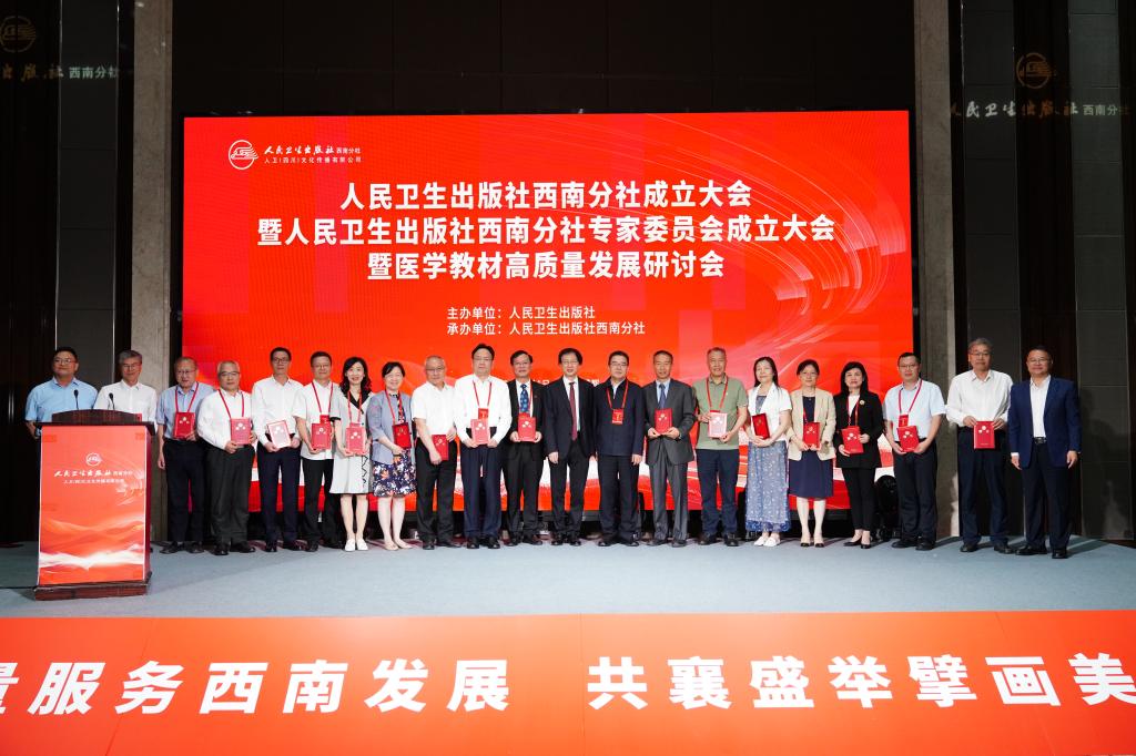 大会举行了人民卫生出版社西南分社成立大会暨人民卫生出版社西南分社专家委员会(简称“专委会”)成立大会仪式。专委会由魏于全院士、卞修武院士等104位专家组成。刘建国教授受聘为人民卫生出版社西南分社专家委员会副主委委员,并在会上作了题为《培根铸魂 启智润心---“三全育人”视域下红色卫生文化融入课程思政建设》的大会报告。学校党委委员、副校长陈永正教授受聘为人民卫生出版社西南分社专家委员会委员。