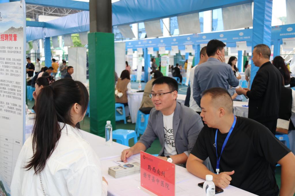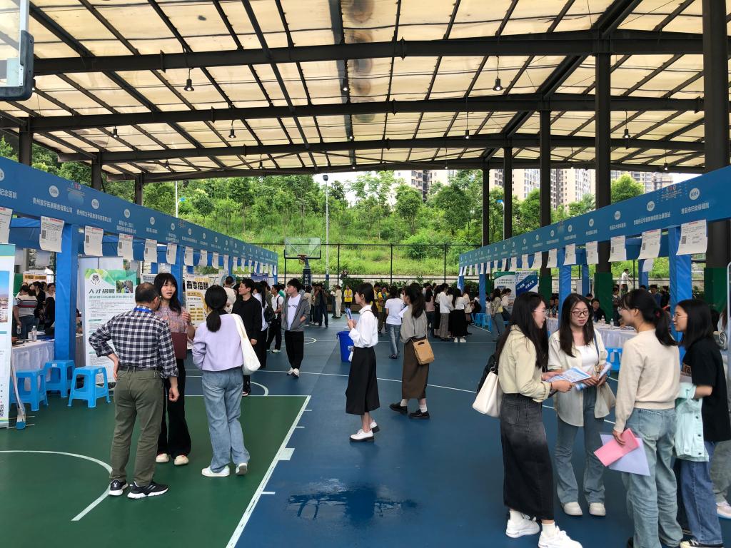 来自贵州、四川、广东等省内外的65家企事业单位向毕业生提供1100余个岗位,1400余名毕业生现场咨询、投递简历,在心仪的单位展位前就工作内容、招聘程序及要求等与用人单位交流和咨询。各用人单位招聘工作人员耐心为毕业生答疑解惑,积极沟通签约、职业成长发展等事宜。根据统计,本次招聘用人单位共收取简历508份,初步达成就业意向180余人。