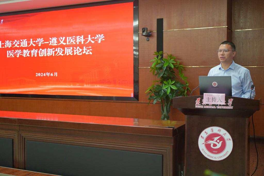 开幕式由学校党委委员、副校长、上海交通大学教务处副处长(挂职)陈永正主持。他表示,上海交通大学近年来在教育教学、学科建设、科学研究与医疗服务等方面取得了显著成就。此处合作交流有力地推动了两校的深度合作。两校在医学人才培养方面的携手合作,对促进贵州及遵义地区医疗人才发展具有重要意义,期望通过双方合作,培养出更多服务国家需求和守护人民生命健康的高素质医学人才。