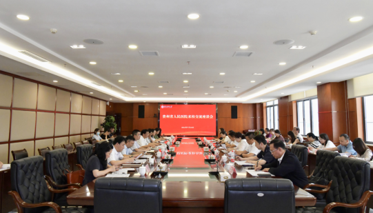 7月10日,贵州省人民医院党委书记刘代顺,党委副书记、院长查艳一行来校考察交流并举行座谈。学校党委副书记、校长刘建国,党委学校办公室、党委宣传部、人事处、研究生院、教务处、科技处、第一临床学院、护理学院等职能部门和学院负责人参加。
