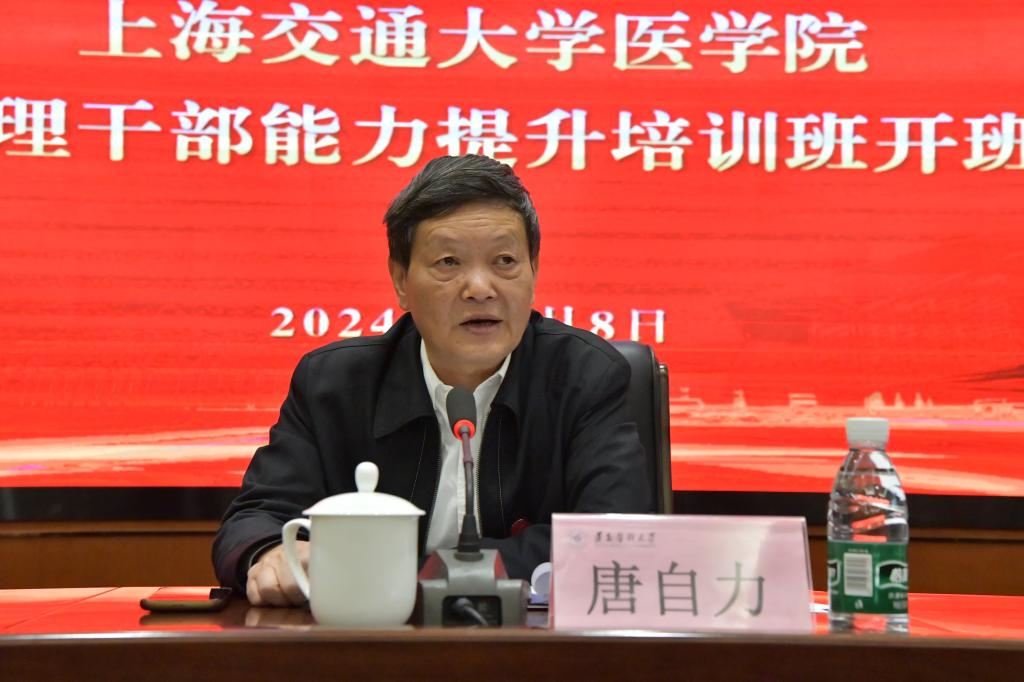 11月8日上午,上海交通大学医学院基层管理干部能力培训班在beat365官网顺利开班,开班仪式在新蒲校区行政楼一楼多功能厅举行。beat365官方网站党委委员、附属医院党委书记唐自力出席并致辞,上海交通大学医学院参训人员40余人参加。