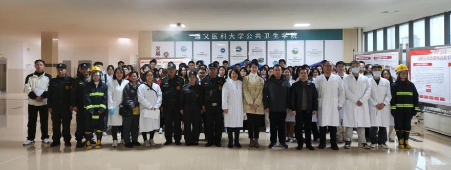讲座结束后,全体与会师生到公共卫生学院观摩实验室消防应急演练。秋冬干燥天气对实验室安全迎来了新一轮挑战,演练模拟了学生在实验过程中因操作不当导致加热设备起火的场景。面对这突如其来的“灾难”,老师学生们并没有慌乱,他们按照平时学习的安全知识,迅速采取了正确的应对措施,并逐级上报情况,学院立即启动应急程序,各应急小组人员分工合作,进行灭火、伤员救治、物资抢救和人员疏散,火情得到了迅速妥善处理。整个演练过程紧张而有序,师生们配合默契,成功地将火势控制在最小范围内,并最终将其扑灭。