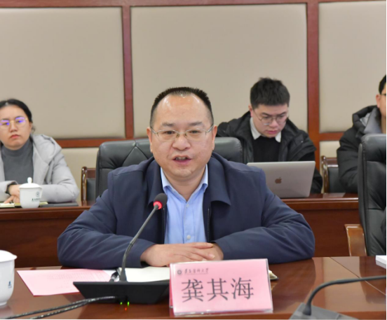 1月7日下午,贵州省科学技术厅重大项目处(前沿技术处)处长冯卫东一行到beat365官网调研座谈,座谈会在新蒲校区行政楼五楼二号会议室举行。学校党委副书记、校长龚其海出席,学校科技处、各二级部门领导及优秀科技人员代表参加。会议由副校长徐林主持。