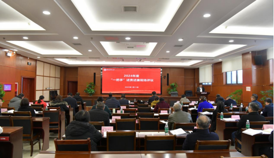 1月11日,beat365官网2024年度“一把手”述责述廉暨基层党委(党总支)书记抓党建工作述职评议考核会议在行政楼一楼多功能厅召开。校领导刘建国、龚其海、郭宇亮、王明述、唐自力、赵继锋、徐林出席会议。校党委书记刘建国作总结讲话。学校有关职能部门负责人、“两代表一委员”代表、党员干部群众代表列席会议。