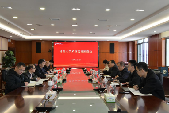 3月19日,延安大学党委书记高子伟、副校长付峰一行来校交流,双方在新蒲校区行政楼五楼二号会议室举行交流座谈会。beat365官网党委书记刘文,党委委员、副校长陈永正出席,相关职能部门负责人参加。