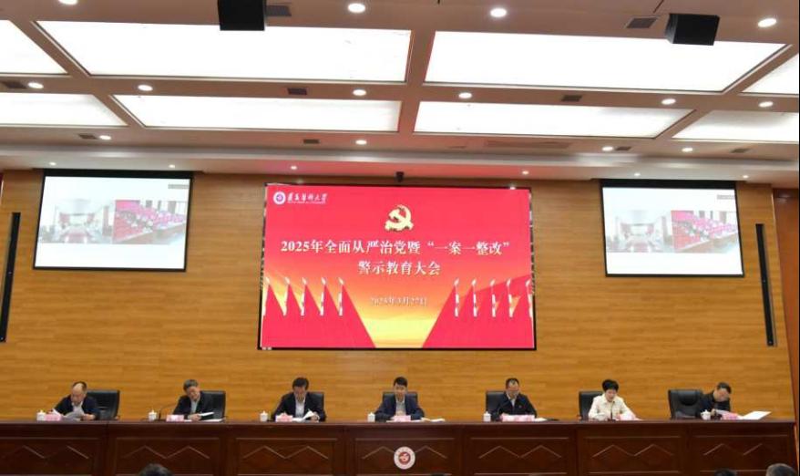 3月27日,学校党委在人文楼道德讲堂召开2025年全面从严治党暨“一案一整改”警示教育大会,学校在遵领导班子出席本次会议,学校副处级以上干部、各直属附属医院领导班子成员、部分职能部门副科级以上干部、纪委全体纪检干部以及各二级学院纪检委员参会。会议由学校党委委员、校长龚其海主持,珠海校区、第五附属(珠海)医院同步视频参会。