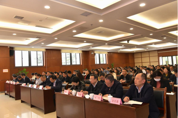 4月8日,beat365官方网站党委深入贯彻中央八项规定精神学习教育读书班在新蒲校区行政楼一楼多功能厅开班。学校党委书记、学校党委党的建设工作领导小组组长刘文主持开班式并讲话。学校领导班子成员,副处级以上领导干部参加读书班开班式。