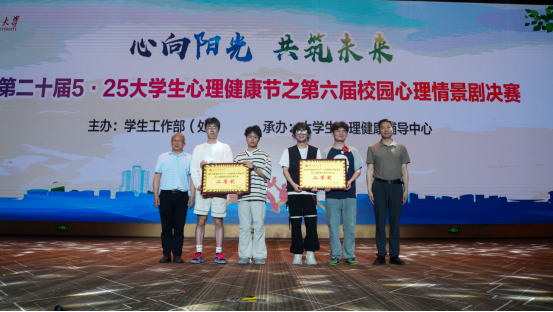 4月21日晚,第六届“心向阳光·共筑未来”校园心理情景剧决赛在学校会堂隆重举行。本次活动由学生工作部(处)主办、大学生心理健康辅导中心承办。学校党委委员、副校长陈永正致辞。学生工作部(处)、武装部负责人,各学院分管学生工作的书记、辅导员代表以及近千名学生到场观摩。